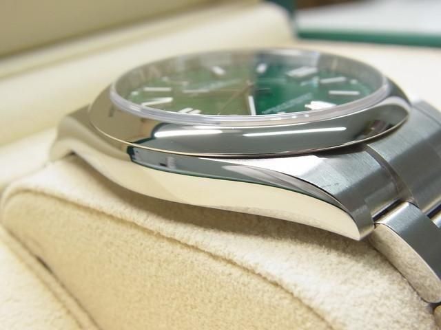 【仕様】素材:ステンレスケース&ブレスレット(オイスターブレス)、風防:サファイアガラス、ムーブメント:クロノメーター自動巻(Cal.3230 /約70時間パワーリザーブ)、防水性能:100M、文字盤:グリーン