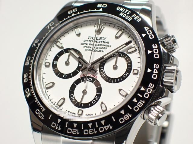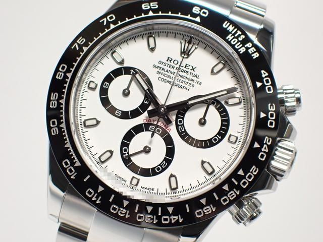 【仕様】素材:ステンレス(ベゼル:セラミック)、ベルト:エクステンションリンク付きオイスター、風防:サファイアガラス、ムーヴメント:クロノメーター自動巻クロノグラフ、文字盤:ホワイト